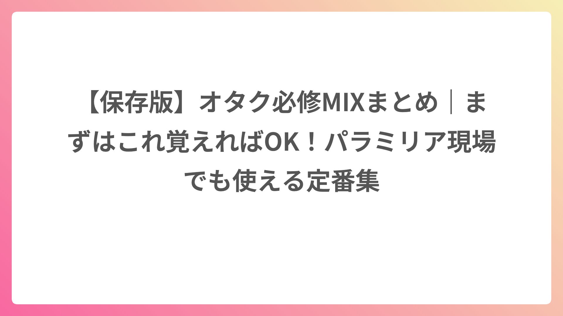 👉 現場で聴いて完成するタイプの楽曲が多い