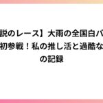 そんな豪雨の中、私の「推し」の選手は完走を果たしました。あの時、奇跡とも言うべき状況で完走した姿を見て、その実力と精神力に深く感動し、応援の熱意はさらに高まっていきました。