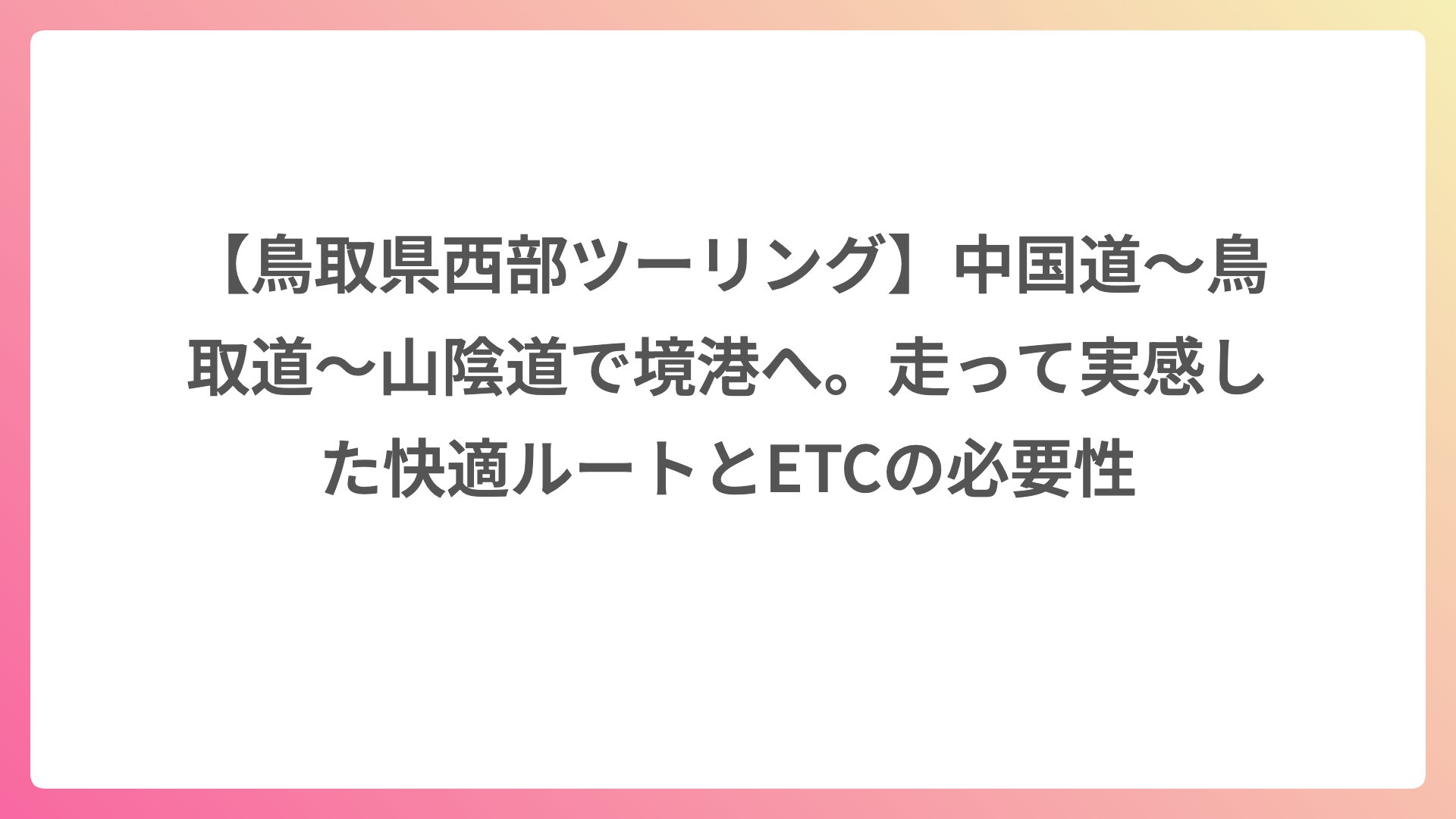 まとめ|鳥取県西部の日帰りツーリングは快適だった。だからこそETCの必要性を強く感じた