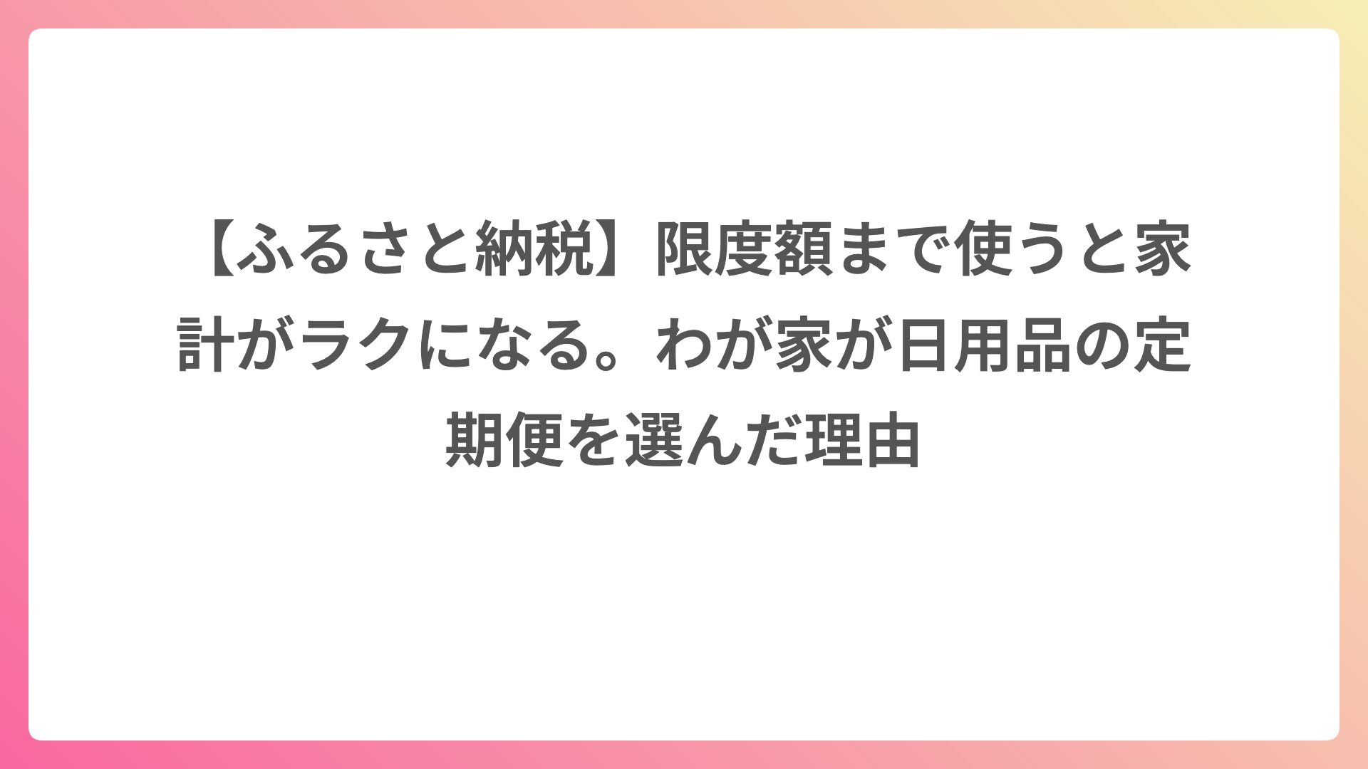 だからこそ、見直しの軸は「全部外す」ではなく、「わが家の使い方に対して、どこまで必要か」を決めることだと思います。