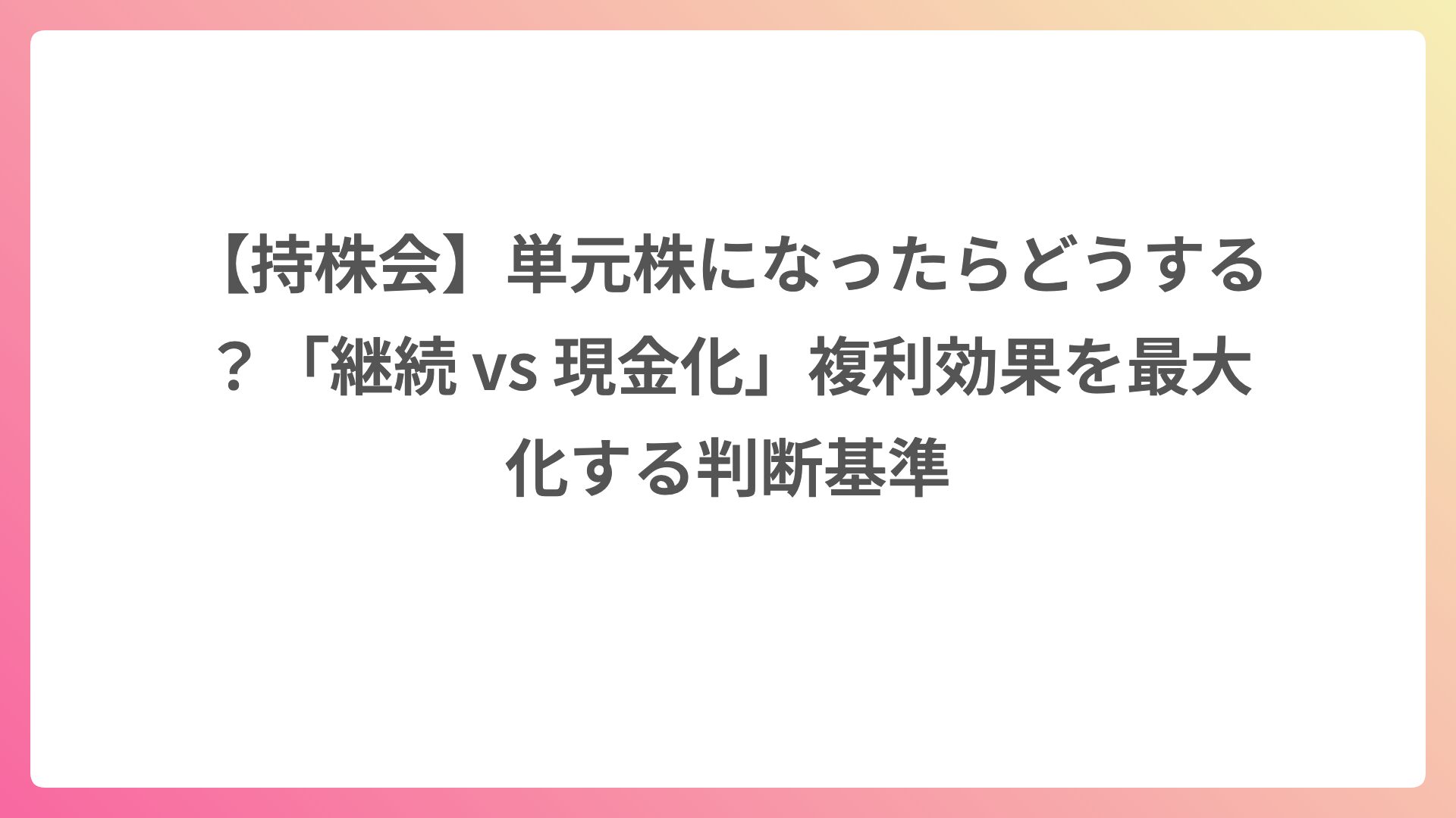 資産はマネーフォワード MEで管理し、家計の見える化を実践中。従業員持株会を活用しながら、株式投資の基礎を学んでいます。 趣味はバイク・クルマ、そしてアイドルの推し活。実体験をもとに、役立つ情報を発信しています。 気長にお付き合いいただけると嬉しいです。
