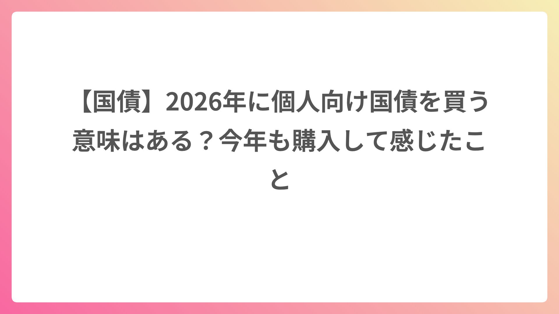 2026年の個人向け国債は、コロナ禍の頃と同じ感覚では見ない方がいいです。