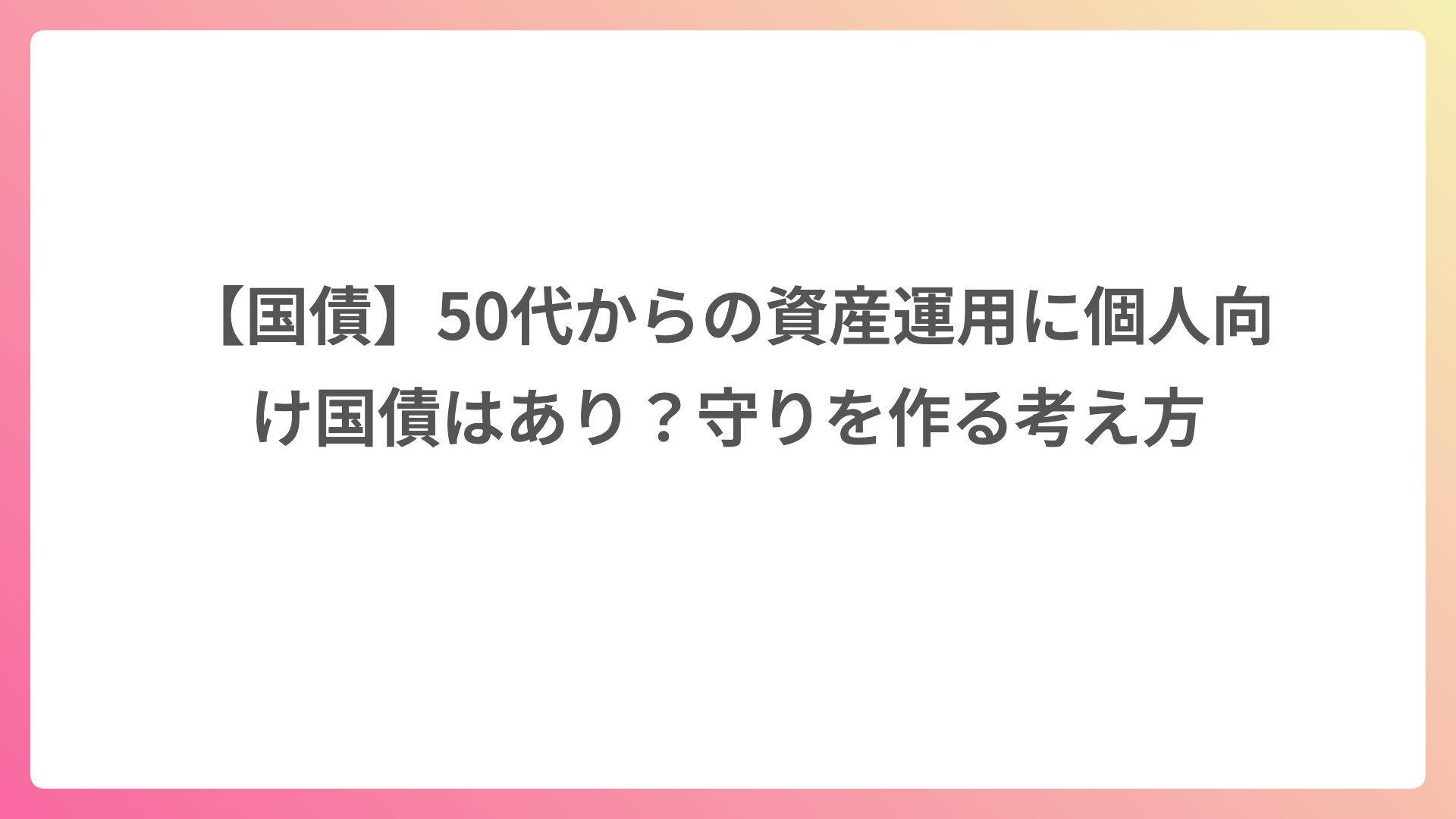 【国債】50代からの資産運用に個人向け国債はあり?守りを作る考え方