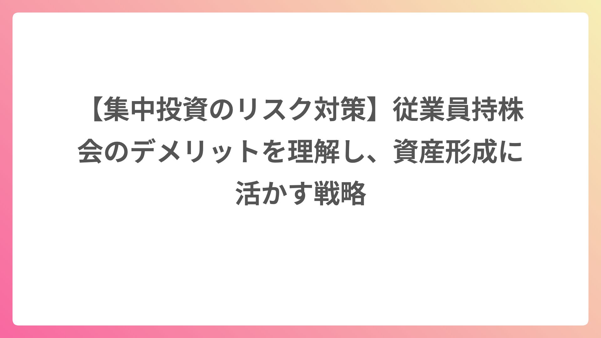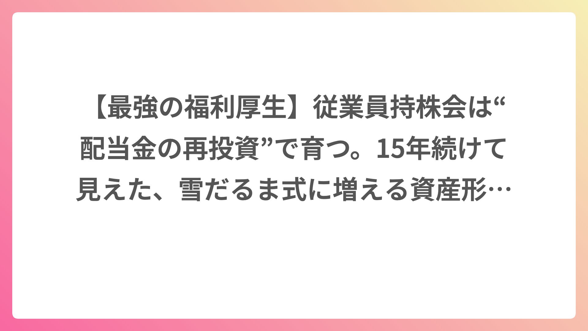 これがいちばん納得感のある見直しでした。