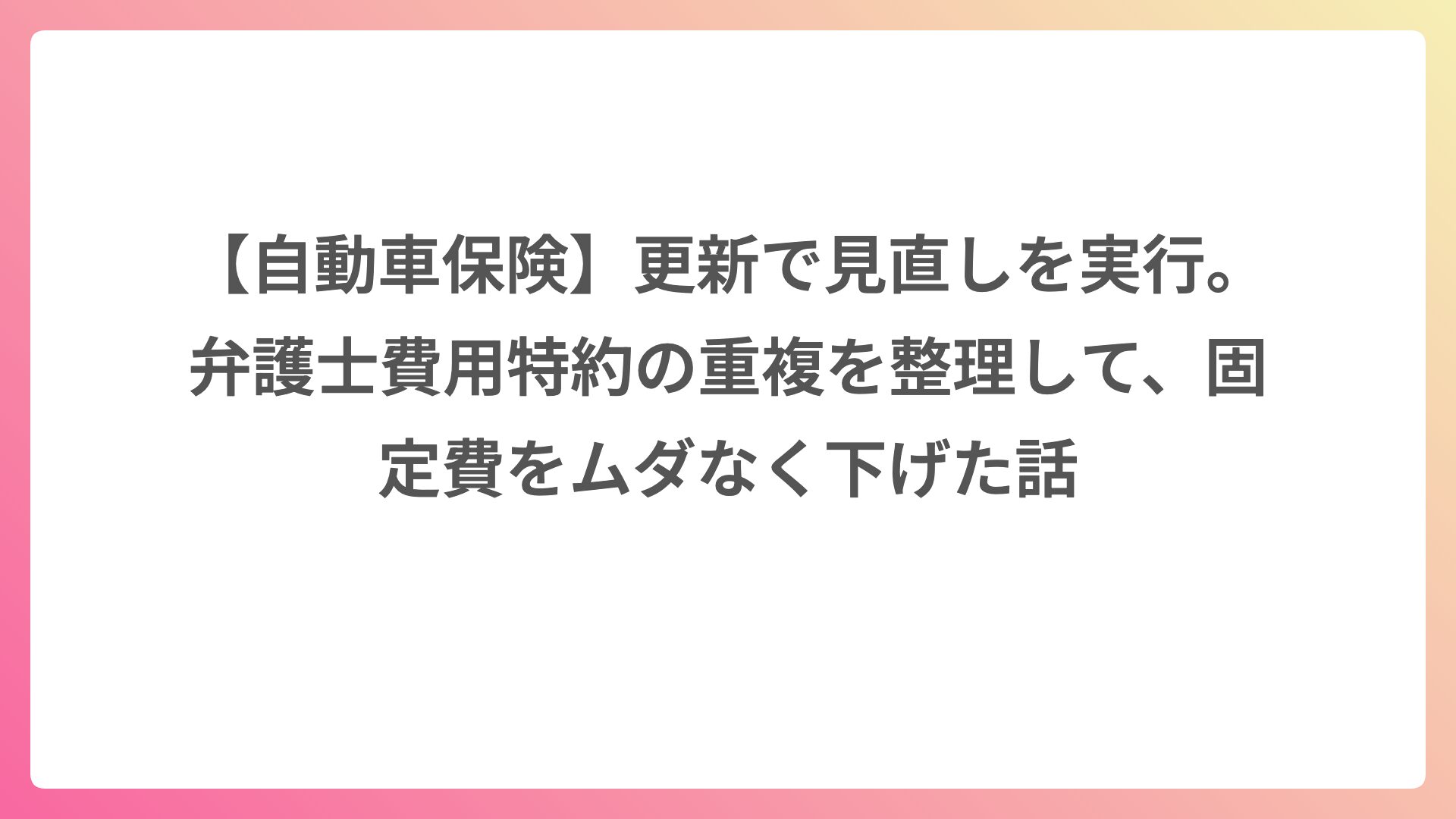 今回いちばん見直し効果が大きいと思ったのが、弁護士費用特約です。