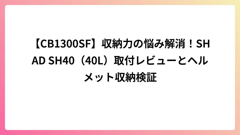 【CB1300SF】収納力の悩み解消!SHAD SH40(40L)取付レビューとヘルメット収納検証