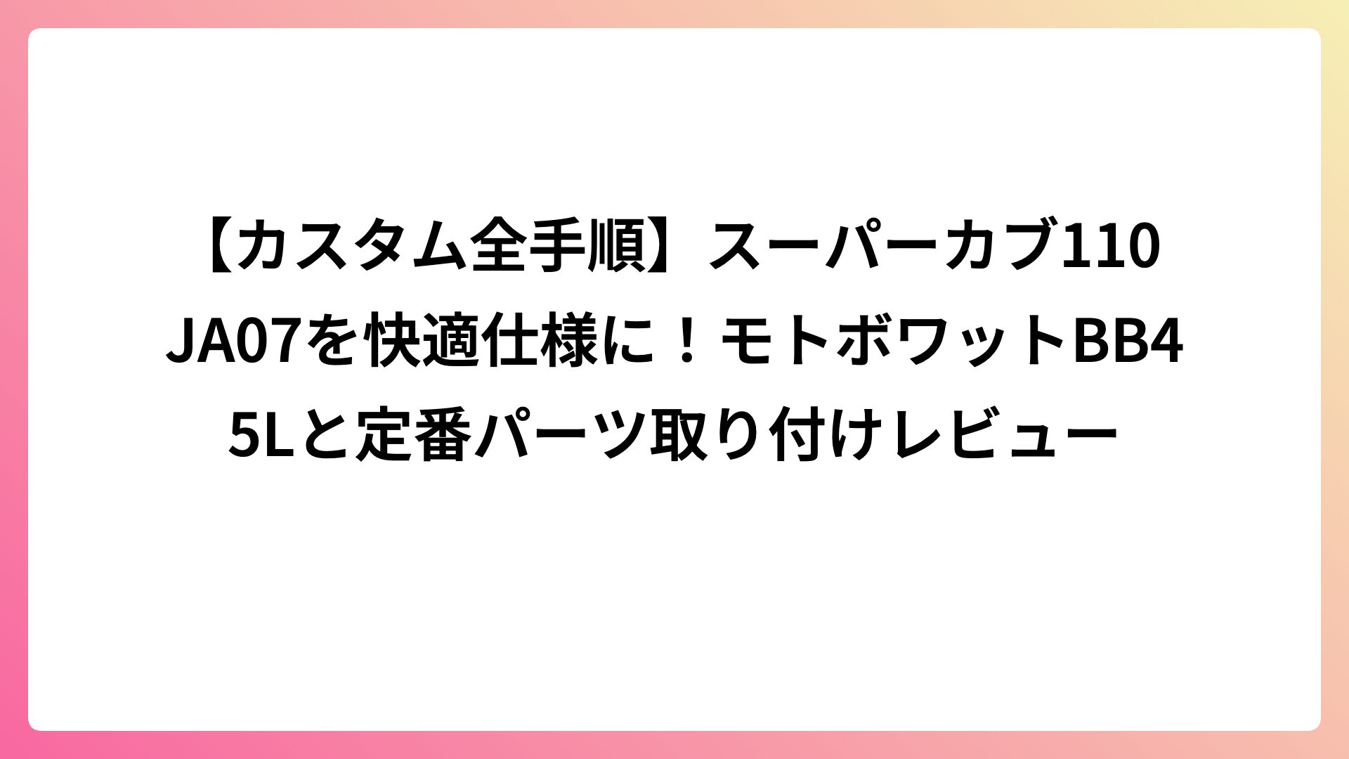 スーパーカブ110の型式にはJA07、JA10、JA44、JA59などがありますが、あえて旧型のJA07にこだわった理由を解説します。