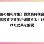 【最強の福利厚生】従業員持株会は配当金再投資で資産が爆増する!15年続けた効果を解説