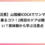 今回は、山陰エリアでスマートに列車を乗りこなすために、ワンマン列車の正しい乗り方とICOCA利用時の注意点を、筆者の実体験を交えて詳しく解説します。